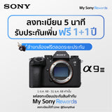 α9 III มีเซนเซอร์ภาพ Global Shutter ฟูลเฟรมล้ำสมัยโดยมีพิกเซลที่ใช้งานจริง 24.6 ล้านจุด สถาปัตยกรรม CMOS แบบเรียงซ้อน และหน่วยความจำภายใน ให้ความละเอียดสูงและความเร็วล้นเหลือ ซึ่งสามารถจับวัตถุที่เคลื่อนไหวอย่างรวดเร็วได้โดยไร้การบิดเบือน และโครงสร้างแบบเรียงซ้อนและการแปลง A/D ขั้นสูงของเซนเซอร์ยังช่วยให้มีการประมวลผลด้วยความเร็วสูงเพื่อให้จับภาพโดยมีความล่าช้าน้อยที่สุด นอกจากนี้ยังมาพร้อมกับระบบประมวลผล BIONZ XR™ ขั้นสูง α9 III จึงสามารถถ่ายภาพต่อเนื่องสูงสุด 120 เฟรมต่อวินาที ทำให้โฟกัสได้ทุกการเคลื่อนไหวด้วย AI ทรงพลัง, AF ตรวจจับระยะห่างที่อัดแน่น และการรับรู้วัตถุที่กว้าง